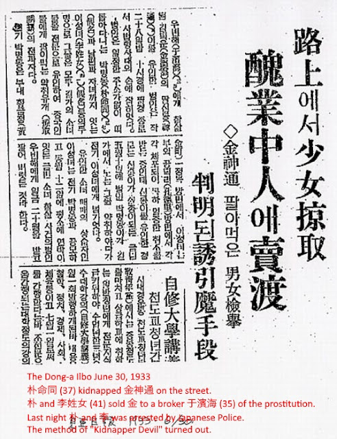 kidnapping, Human trafficking, Koreans kidnapped women and sold them to the Manchuria area.